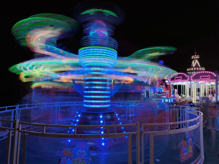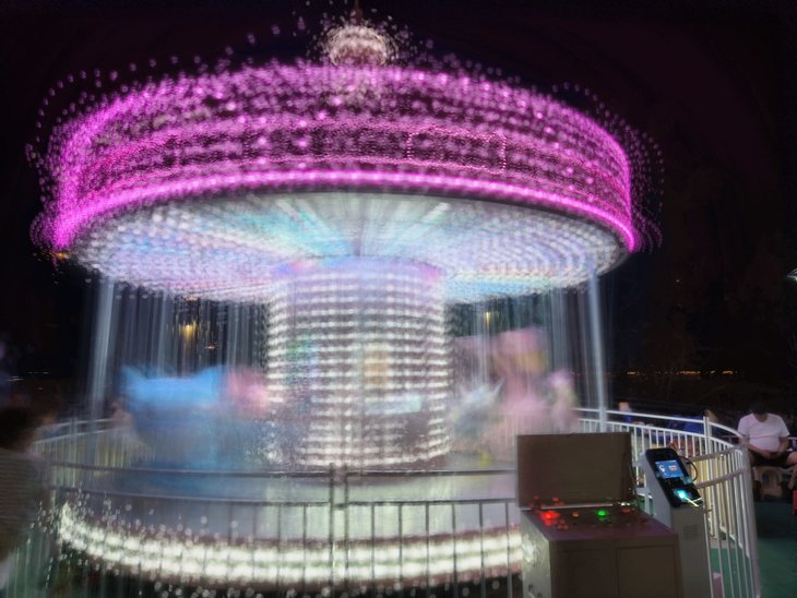 ? ? 長曝光適合拍攝夜晚的車水馬龍大家都知道,但其實(shí)拍攝一些其他發(fā)光的動(dòng)態(tài)物體也非常有意思,就比如拍攝游樂場的里的娛樂設(shè)施,在長曝光模式記錄下整個(gè)畫面更具有夢幻感。