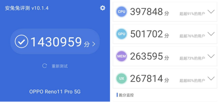 Reno11Pro游戲性能評(píng)測(cè):滿血驍龍8+跑143萬(wàn)分,還能滿幀原神!