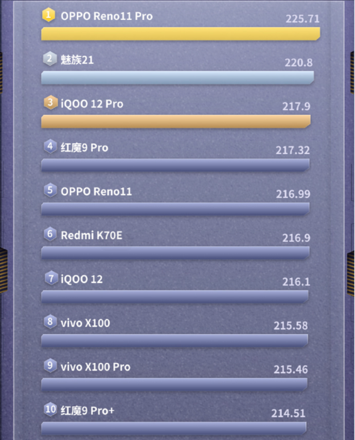 不僅Pro版排名No .1,OPPO Reno11標(biāo)準(zhǔn)版也排名第五,兩款手機(jī)均具備出色的流暢體驗(yàn)。