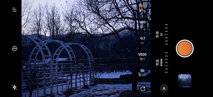 ? ? 對于專業(yè)攝影用戶來說,F(xiàn)ind X7 Ultra的可玩性非常強,不僅將專業(yè)模式升級為哈蘇大師模式,而且還提供了Auto和Pro兩種不同的拍照選項。兩個大師模式的相同點是,在新一代超光影圖像引擎的支持下都能拍攝哈蘇風格的色彩,以及遠超手機的高畫質(zhì)、高動態(tài),實現(xiàn)媲美中畫幅的相機質(zhì)感與影調(diào);并支持銳度、對比度、飽和度的調(diào)節(jié),以及暗角開關。不同點則在于,Pro模式下,可以手動調(diào)校包括ISO、快門速度、EV曝光、對焦距離以及色溫在內(nèi)的專業(yè)拍照參數(shù)。