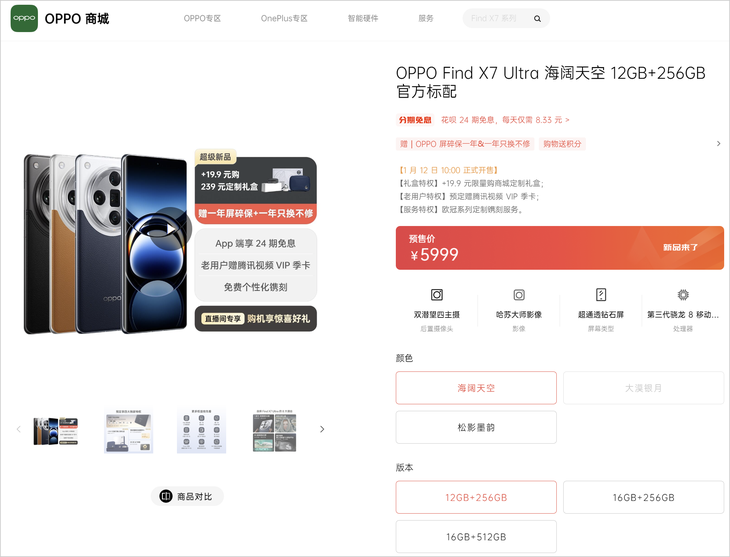 在影像配置方面,F(xiàn)ind X7 Ultra后置一顆5000萬(wàn)像素超廣角鏡頭(1/2英寸|光圈f/2.0|等效焦距14mm),一顆5000萬(wàn)像素廣角鏡頭(1英寸 | 光圈 f/1.8 | 等效焦距23mm)、一顆5000萬(wàn)像素3X潛望長(zhǎng)焦鏡頭(1/1.56英寸 | 光圈 f/2.6 | 等效焦距65mm)、一顆5000萬(wàn)像素6X潛望長(zhǎng)焦鏡頭(1/2.5英寸 | 光圈 f/4.3| 等效焦距135mm)。
