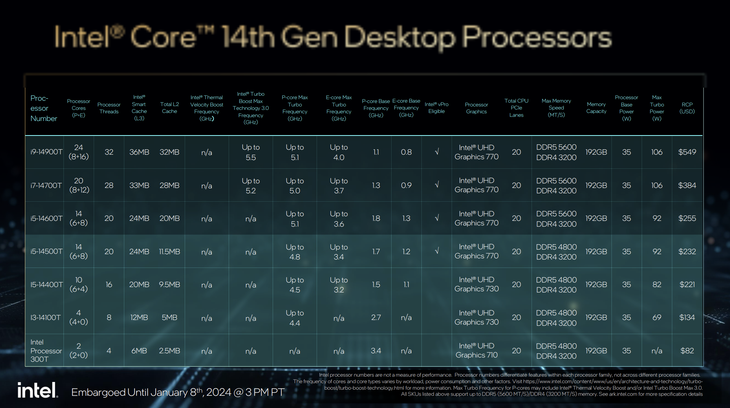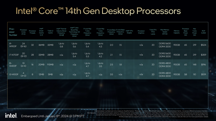 需要注意的是,與2023年10月份發(fā)布的酷睿第14代臺式機(jī)處理器一樣,這些全新的酷睿第14代臺式機(jī)處理器鎖倍頻版,均采用的是老架構(gòu)設(shè)計!