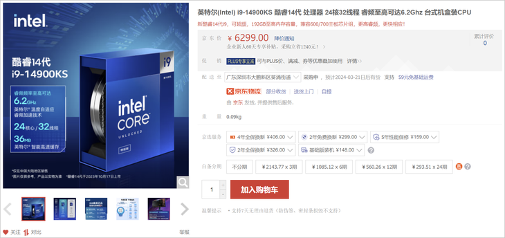 英特爾酷睿i9-14900KS處理器上市:6.2GHz超凡睿頻,6299元國行首發(fā)