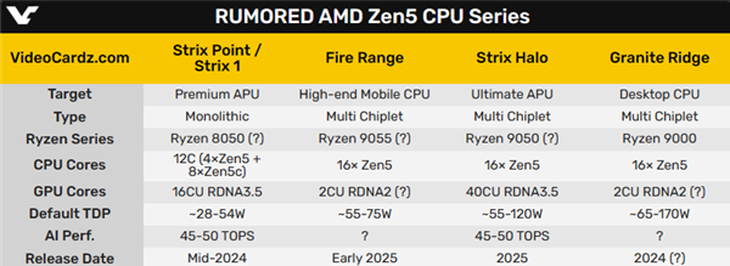 ? ? Zen5銳龍?zhí)幚砥饕呀?jīng)進(jìn)入周轉(zhuǎn)測試階段,桌面端代號為Granite Ridge,預(yù)計(jì)將在第三甚至第四季度發(fā)布。而移動(dòng)端則將在今年晚些時(shí)候推出首款代號為Stirx Point的產(chǎn)品,其規(guī)格將包括4個(gè)Zen5核心和8個(gè)Zen5c核心,以及16個(gè)RDNA3+ GPU核心,TDP范圍在28-54W之間。明年還將推出高端移動(dòng)端產(chǎn)品Fire Range,以及終極產(chǎn)品Strix Halo,展現(xiàn)了AMD對于性能與能效的不懈追求。