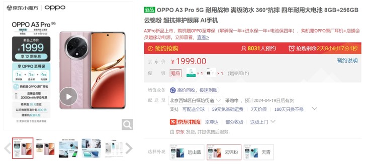 ? ??在性能方面,OPPO A3 Pro搭載的天璣7050芯片采用了臺(tái)積電6nm先進(jìn)制程工藝,再加上大內(nèi)存和大儲(chǔ)存的加持,無論是玩游戲還是觀影娛樂,都能提供流暢暢快的使用感受。目前,OPPO A3 Pro已經(jīng)開始預(yù)售,售價(jià)僅為1999元起,對(duì)于需要大內(nèi)存的用戶來說,這款手機(jī)無疑是性價(jià)比非常高的好選擇!在4月25日前購買該手機(jī)還將免費(fèi)贈(zèng)送OPPO至尊保,包括四年電池保、一年屏碎保以及行業(yè)唯 一的一年進(jìn)水保。此外,現(xiàn)在下單購買OPPO A3 Pro還可享受12期免息、贈(zèng)OPPO原廠耳機(jī)、贈(zèng)移動(dòng)電源等福利。