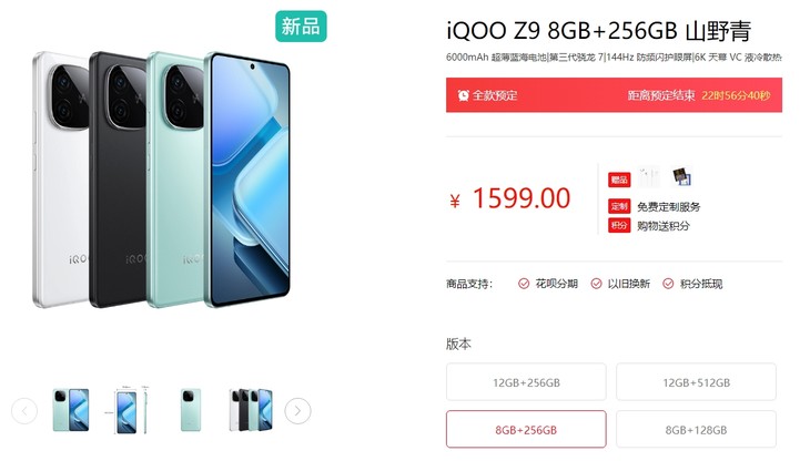 iQOO Z9提供了星芒白、曜夜黑以及山野青三款配色,價(jià)格為1499元(8GB+128GB)、1599元(8GB+256GB)、1799元(12GB+256GB)、1999元(12GB+512GB),性價(jià)比十分突出。