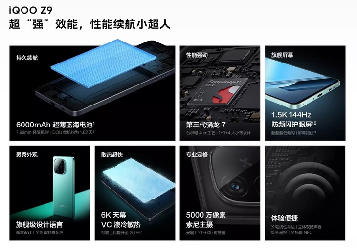 6000mAh大電池暢玩一天不充電 iQOO Z9到手價(jià)1599元起
