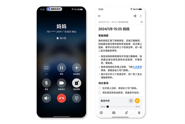 ? ? 而隨著母親年歲的增長,記憶力衰退也是我們不得不面對的客觀現(xiàn)實(shí),可能前一天電話里交代過的事,第二天就想不起來了,雖然我們知道這并非她們的本意,但這依然是一個現(xiàn)實(shí)問題。不過好在OPPO Find X7具備非常智能的AI通話摘要功能,在通話完成后會為自動生成通話內(nèi)容的要點(diǎn),并準(zhǔn)確地輸出帶有主題、要點(diǎn),以及待辦事項(xiàng)的通話內(nèi)容摘要,幫助母親輕松回顧電話交流內(nèi)容,甚至省去翻閱錄音的煩惱。