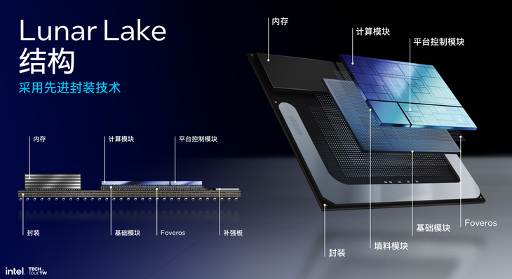 具體來說,Lunar Lake架構(gòu)處理器,英特爾將內(nèi)存設(shè)計在了處理器基板上面。這樣能夠有效節(jié)省電腦內(nèi)部PCB的面積,進(jìn)而實(shí)現(xiàn)PC小型化。同時這樣設(shè)計也能夠顯著降低功耗。