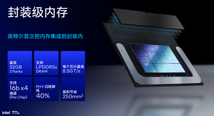 三,為了追求小型化,英特爾首次把內(nèi)存集成到處理器封裝內(nèi)