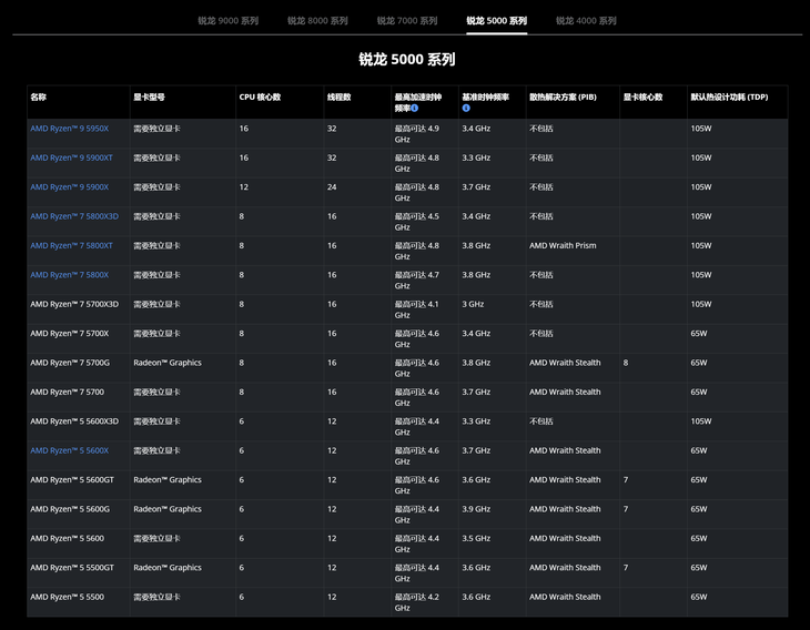 算上銳龍9 5900XT和銳龍7 5800XT,目前AMD銳龍5000系列臺(tái)式機(jī)處理器共擁有17款型號(hào)。