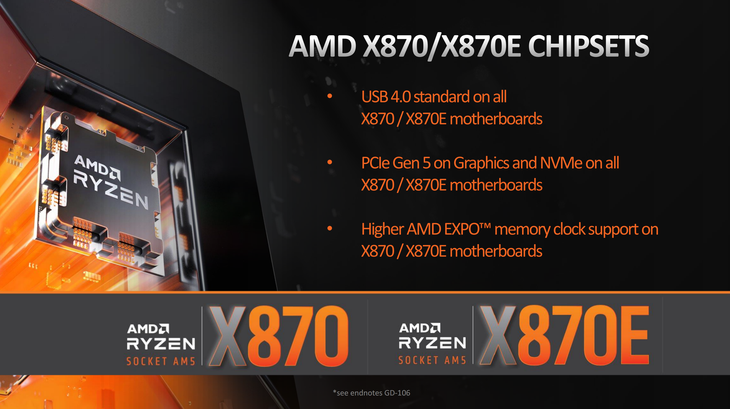 最后,與銳龍9000系列臺(tái)式機(jī)處理器一起發(fā)布的還將有X870和X870E芯片組主板。