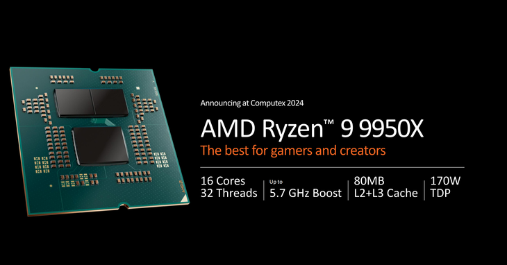 銳龍9 9950X——16核心32線程,至高加速頻率5.7GHz在,TDP 170W