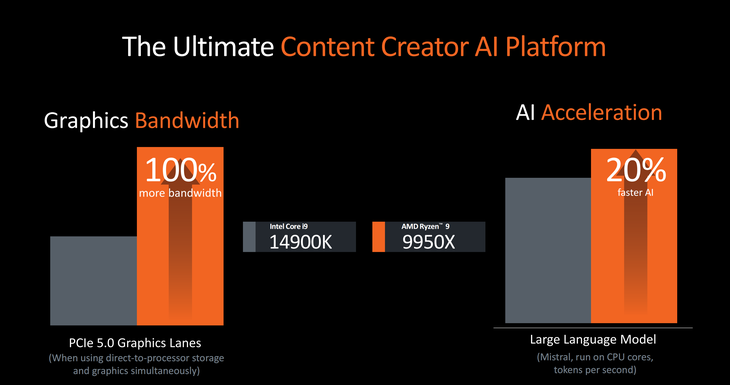 對(duì)比英特爾酷睿i9-14900K,AMD全新旗艦產(chǎn)品銳龍9 9950X在生產(chǎn)力、AI創(chuàng)作、游戲等方面均有著顯著優(yōu)勢(shì)。