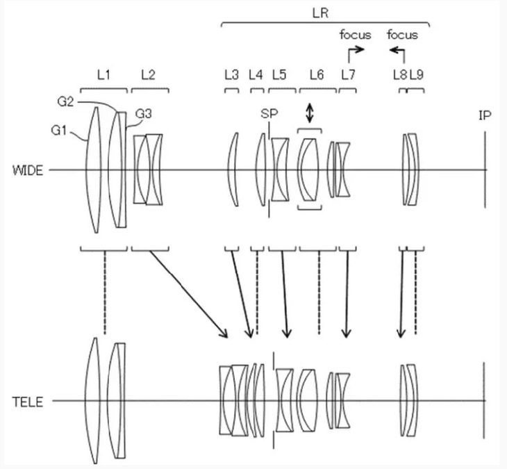 ? ? 從佳能所注冊(cè)的設(shè)計(jì)來(lái)看,鏡頭負(fù)責(zé)變焦的鏡組不算重,而且移動(dòng)距離不算太多,無(wú)論電動(dòng)或手動(dòng)變焦也應(yīng)該輕松。另外值得留意是其對(duì)焦鏡組分成兩組,且作反方向移動(dòng),相信對(duì)焦速度會(huì)非???,且不會(huì)有明顯的呼吸效應(yīng)問(wèn)題。最重要當(dāng)然是最后組鏡片跟焦平面有較大的距離,相信如果真的以這種設(shè)計(jì)推出,將可使用增距鏡。