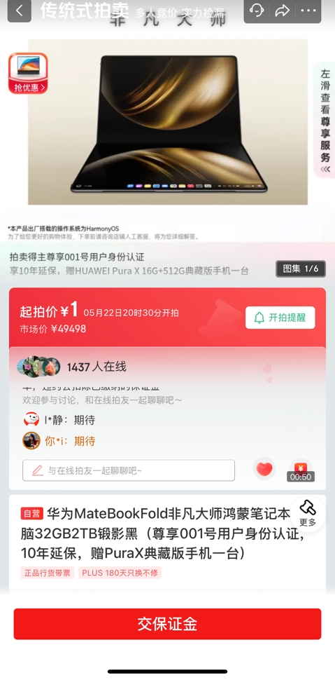 首位鴻蒙折疊電腦用戶將由拍賣誕生!京東1元起拍HUAWEI MateBook Fold非凡大師筆記本