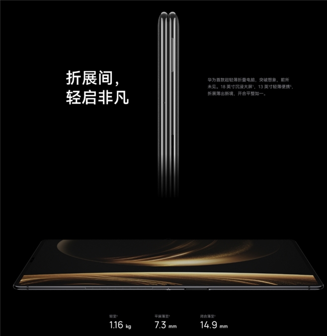 具體到產(chǎn)品層面,HUAWEI MateBook Fold 非凡大師筆記本電腦輕至1.16kg,平展后厚度薄至7.3mm,閉合狀態(tài)下薄至14.9mm,十分便攜。而在輕薄的機(jī)身中,HUAWEI MateBook Fold 非凡大師采用了超薄PCB和三層金剛鋁架構(gòu),搭配銅鋼復(fù)合3D VC,電腦散熱性能進(jìn)一步提升。值得一提的是,該款電腦折疊時還支持多角度懸停,基于為折疊電腦量身打造的玄武水滴鉸鏈和超精密榫卯架構(gòu),電腦能以超小的體積和重量提供超強(qiáng)大的扭力,讓電腦實(shí)現(xiàn)穩(wěn)定懸停。