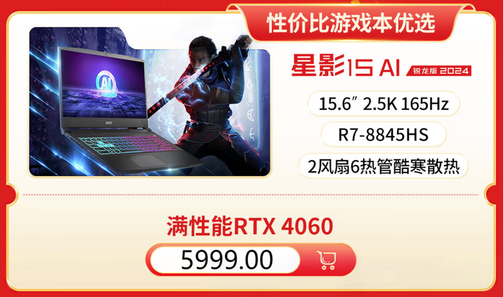 ● 星影 15 AI 銳龍版(R7-8845HS + 4060):5999元,國(guó)補(bǔ)到手價(jià)4800元