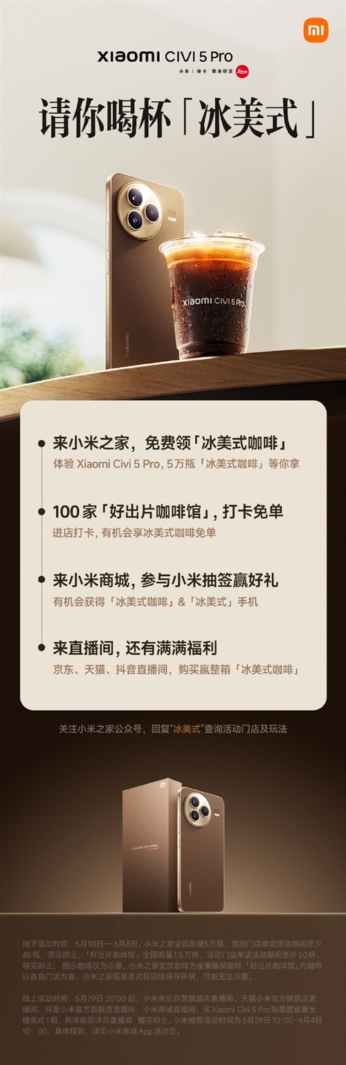 小米免費(fèi)請(qǐng)大家喝冰美式咖啡 小米Civi 5花樣促銷(xiāo)!