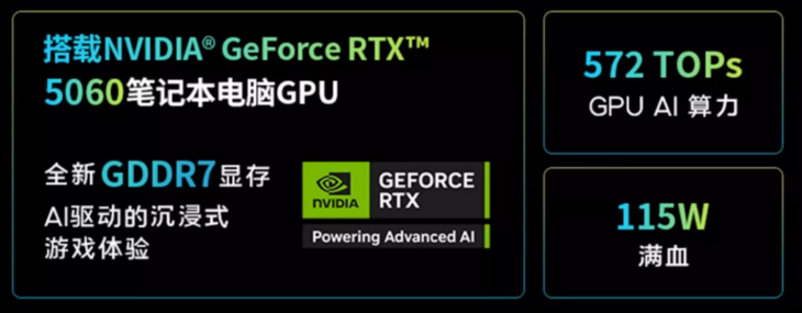 GPU部分也是115W滿功耗的RTX5060,GPU AI算力也達(dá)到572 TOPs,相比上一代RTX40系列不僅能效更高,DLSS 4技術(shù)也能大幅提升3A大作的游戲幀數(shù),讓曾經(jīng)的硬件殺手也可以跑到電競的高幀率體驗(yàn)!