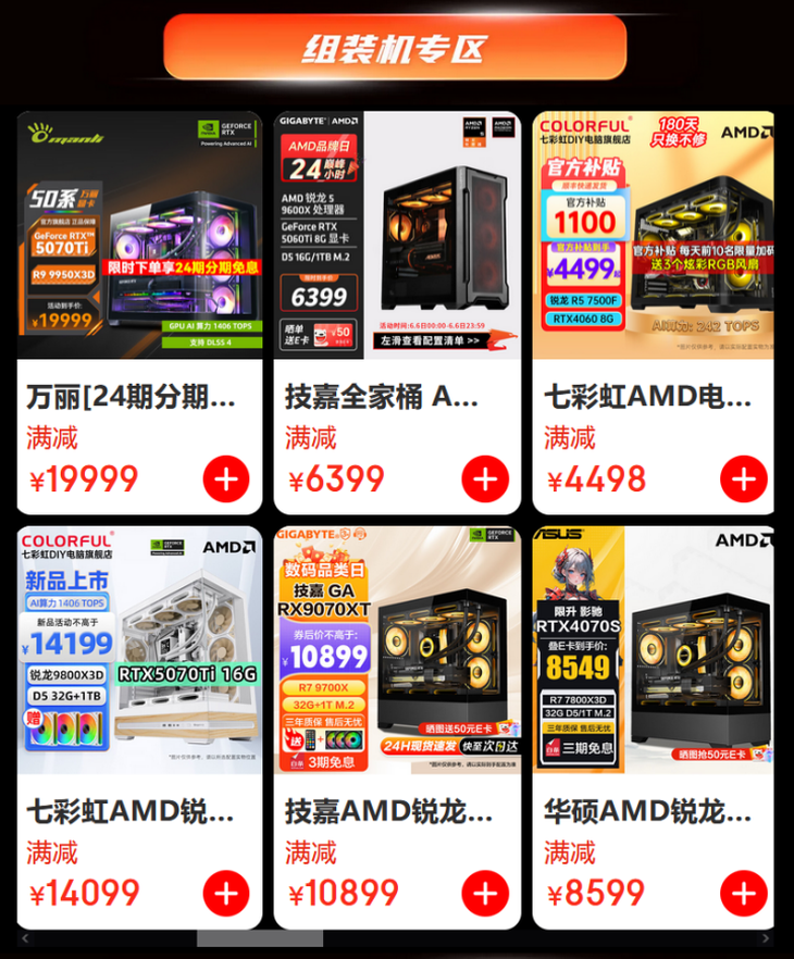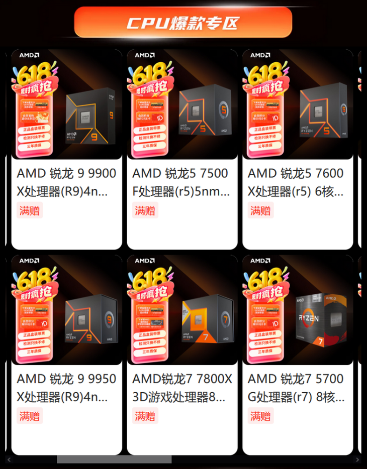 AMD京東自營(yíng)旗艦店618會(huì)員日大促依然包含了全線DIY產(chǎn)品,不僅有全新的銳龍9000/9000X3D系列處理器,還有依舊熱銷的銳龍7000/7000X3D系列處理器和經(jīng)典的銳龍5000系列處理器,同時(shí)還有和主板合作伙伴推出的板U套裝超值搭配,讓朋友們搭建自己全新的整機(jī)平臺(tái)更加方便快捷。當(dāng)然AMD還為不熟悉DIY攢機(jī)的用戶們準(zhǔn)備了多款整機(jī)產(chǎn)品,這些由各大裝機(jī)品牌商使用銳龍?zhí)幚砥骱蚏adeon顯卡打造的整機(jī)產(chǎn)品不僅性能強(qiáng)勁,還都擁有極具品牌特色的外觀,這些內(nèi)外兼修的整機(jī)一定有一款可以滿足大家的需要。