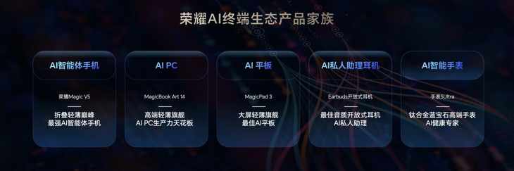 榮耀阿爾法戰(zhàn)略加速落地背景下,榮耀筆記本、平板、智能穿戴等AI終端生態(tài)產(chǎn)品家族也將紛紛交出第—份答卷。其中,榮耀MagicBook Art 14 2025的YOYO助理將集搜索、閱讀、創(chuàng)作、智控于一體,讓榮耀筆記本首次實現(xiàn)全面AI操作,開啟AI PC自動駕駛時代;榮耀平板MagicPad 3通過AI軟硬件深度融合,將行業(yè)首發(fā)全局AI生產(chǎn)力、首次實現(xiàn)與iOS、鴻蒙、安卓手機無縫文件互傳,帶來大屏、輕薄、AI全面領先的最佳AI平板體驗。榮耀手表5 Ultra和榮耀Earbuds開放式耳機,也將分別推出AI健康監(jiān)測和AI翻譯功能,帶來更豐富的智能穿戴體驗。