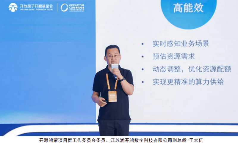 在主題演講環(huán)節(jié),來自開源鴻蒙社區(qū)的多家成員單位代表各自領(lǐng)域做了議題分享。開源鴻蒙項(xiàng)目群工作委員會(huì)委員、江蘇潤開鴻數(shù)字科技有限公司副總裁于大伍發(fā)表了《開源鴻蒙+AI:探索行業(yè)新智硬件無限可能》的主題演講,他表示,開源鴻蒙作為契合AI時(shí)代的較好數(shù)字底座,天然具備高能效、強(qiáng)效能、自協(xié)同三大優(yōu)勢。潤開鴻基于在開源鴻蒙領(lǐng)域多年的積累以及在AI行業(yè)大模型的實(shí)踐,打造了鴻銳AI云桌面、鴻銳AI Box、鴻銳AI平板以及AI PC等多款產(chǎn)品,形成了面向金融、電力、醫(yī)療、辦公、智慧城市等多場景的云邊端協(xié)同全棧AI交付方案。