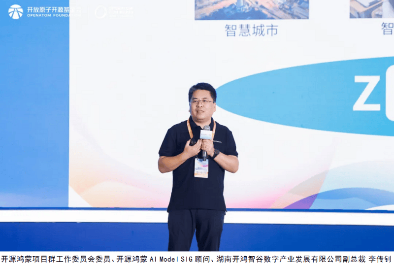 開源鴻蒙項(xiàng)目群工作委員會(huì)委員、開源鴻蒙AI Model SlG顧問、湖南開鴻智谷數(shù)字產(chǎn)業(yè)發(fā)展有限公司副總裁李傳釗以《開鴻智谷賦能開發(fā)者,繁榮開源鴻蒙行業(yè)生態(tài)》為主題,分享了基于開源鴻蒙打造的核心自研產(chǎn)品在鴻實(shí)驗(yàn)箱、在鴻DSDK的創(chuàng)新成果,并展示其在教育、工業(yè)物聯(lián)網(wǎng)等關(guān)鍵場景下的商業(yè)化落地實(shí)踐,探索技術(shù)賦能產(chǎn)業(yè)、生態(tài)驅(qū)動(dòng)應(yīng)用的深層路徑。