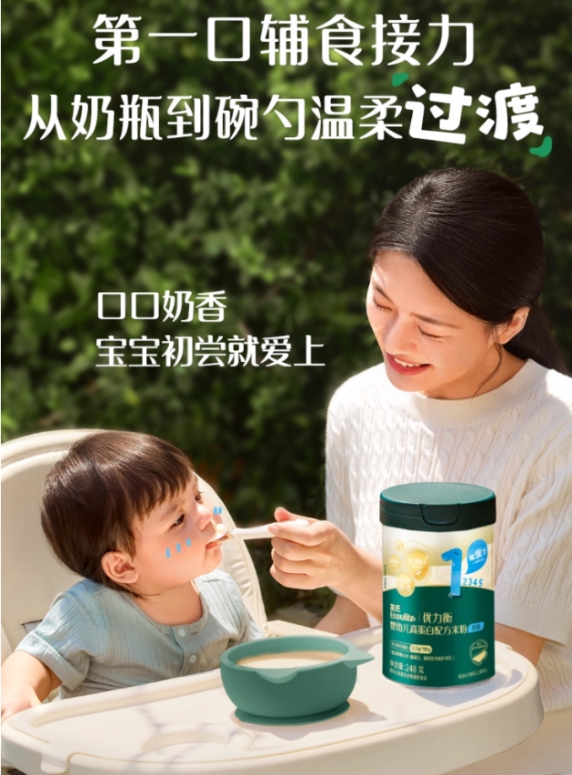 直播間里,金靖現(xiàn)場演示了英氏米粉沖泡,30秒就能調(diào)出細膩順滑的米粉?!坝⑹厦追凼怯玫蜏爻⒀心スに囍谱鞯?還有淀粉酶解工藝把大分子營養(yǎng)變成小分子營養(yǎng),寶寶嬌嫩的腸胃也能輕松消化。”她邊攪邊解釋,一旁的劉勝瑛補充道:“比咱們小時候老人嚼著喂可安全多了,還不用擔心營養(yǎng)不均衡?!币詫殞毜牡谝豢诿追蹫槔?英氏米粉采用淀粉酶解工藝,將大分子營養(yǎng)分解成小分子,對寶寶來說更好消化吸收,助力寶寶從液態(tài)奶平穩(wěn)過渡到半固體食物,幫助小肚子適應,幫寶寶邁出輔食第一步。聊到寶寶轉(zhuǎn)奶期的適應問題,金靖更是對英氏配方米粉贊不絕口,她直言“這款配方米粉太懂媽媽了,乳清蛋白和酪蛋白6:4的比例,跟母乳一模一樣,還有HMO母乳低聚糖,就像給寶寶延續(xù)了‘媽生保護力’。對于剛接觸輔食的寶寶來說,這種貼近母乳的配方,無疑是溫柔又安心的過渡。