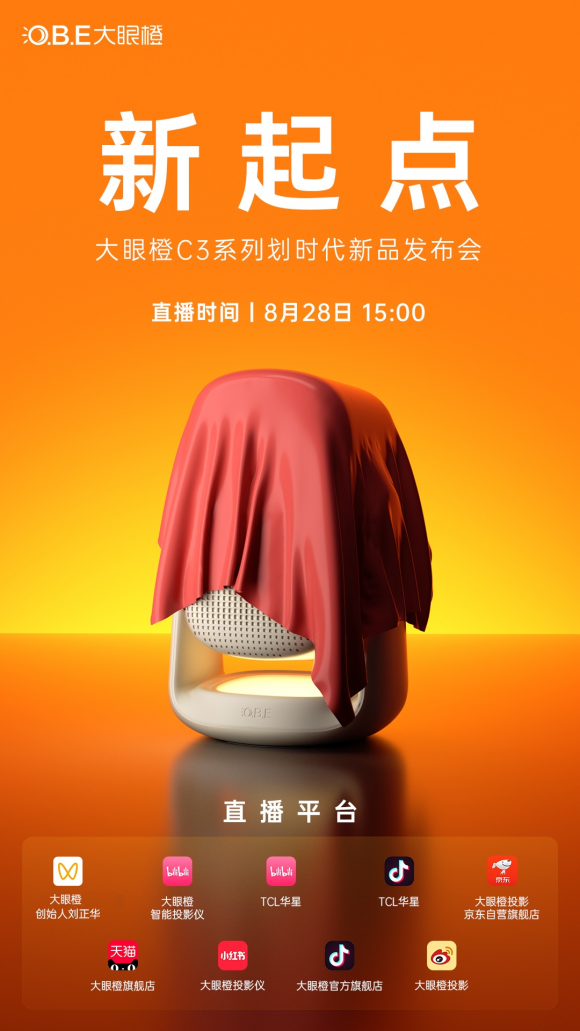 8月28日,大眼橙“新起點(diǎn)”C3系列劃時(shí)代新品發(fā)布會(huì)即將正式啟幕,讓我們共同見(jiàn)證大眼橙如何再次引領(lǐng)智能投影行業(yè),以全新顛覆性體驗(yàn)開(kāi)啟1LCD的新篇章。