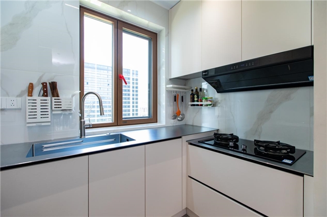 廚房空間,森歌不銹鋼定制櫥柜采用304食品級不銹鋼實(shí)心臺面,同時(shí)水槽與臺面一體無縫焊接,再也沒有打膠變黃的困擾。X先生表示,最驚喜的是抗污能力,醬油灑在臺面上用抹布一擦就凈,切菜、揉面什么的,再也不用像以前那樣費(fèi)力打理。