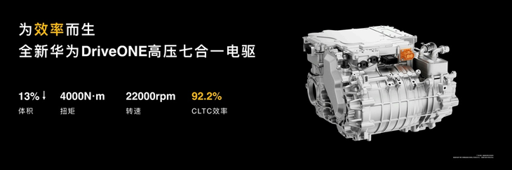 問界M8純電版采用全新高壓純電動力架構(gòu),搭載全新華為DriveONE高壓七合一電驅(qū),體積降低13%,電機(jī)峰值扭矩4000N·m,最高轉(zhuǎn)速22000rpm,CLTC工況驅(qū)動效率92.2%,帶來更低能耗表現(xiàn)和更強(qiáng)動力響應(yīng)。