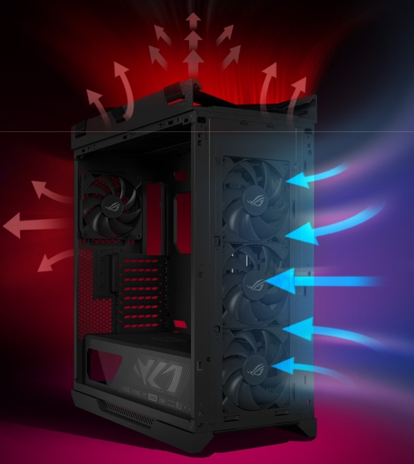 對(duì)于追求極致性能的極客玩家來(lái)說(shuō),機(jī)箱的散熱能力至關(guān)重要。ROG太陽(yáng)神機(jī)箱無(wú)疑是優(yōu)選。其搭載了全面升級(jí)的140x28mm特規(guī)高性能風(fēng)扇,具備103CFM的風(fēng)量以及2.3mmH2O的風(fēng)壓,能夠迅速將機(jī)箱內(nèi)的熱量排出,有效避免硬件因過(guò)熱而降頻,確保系統(tǒng)穩(wěn)定運(yùn)行,讓玩家無(wú)需擔(dān)心散熱問(wèn)題。值得關(guān)注的是,該機(jī)箱還注重靜音設(shè)計(jì),配備了3D立體降噪濾網(wǎng),能夠打散氣流產(chǎn)生的噪音,并抑制硬件運(yùn)行時(shí)的振動(dòng),為玩家營(yíng)造一個(gè)安靜舒適的游戲環(huán)境。