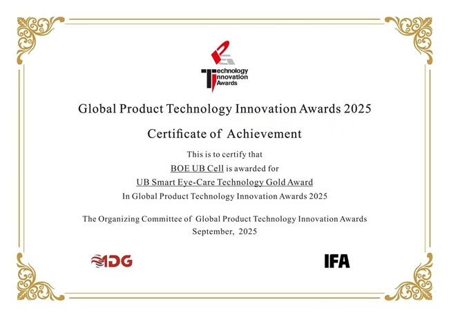 BOE(京東方)UB Cell技術(shù)斬獲IFA 2025年度金獎(jiǎng) 引領(lǐng)畫(huà)質(zhì)與護(hù)眼技術(shù)革命