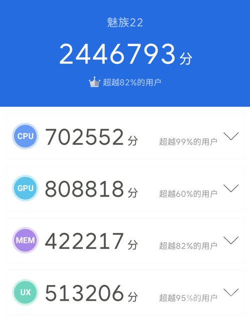 經(jīng)過安兔兔測試,魅族22的成績?yōu)?446793分。