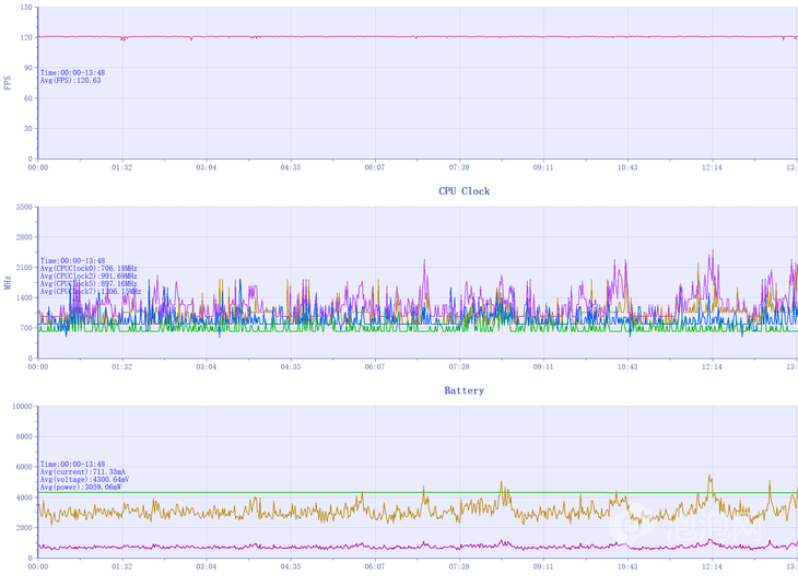 王者榮耀在極高幀率的設(shè)定下,平均幀率可以達到120.63FPS,幀率表現(xiàn)非常穩(wěn)。