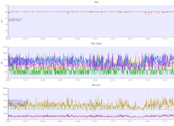 原神選擇高畫質(zhì)+60幀模式,平均幀率為59.96FPS,測試后續(xù)的波動要比游戲初期大一些,但從實際的游戲感受來看,差異并不大。