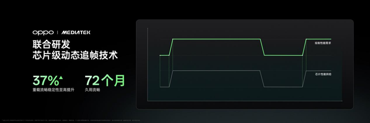 針對高溫、高亮、高負(fù)載等容易產(chǎn)生卡頓而出現(xiàn)不流暢體驗(yàn)的問題,全新一代潮汐引擎首發(fā)OPPO 與聯(lián)發(fā)科聯(lián)合研發(fā)的芯片級動(dòng)態(tài)追幀技術(shù)?;?OPPO 對性能供需不平衡這一核心矛盾的深度認(rèn)知,該技術(shù)通過實(shí)時(shí)追蹤系統(tǒng)繪制需求,實(shí)現(xiàn)算力的智能動(dòng)態(tài)供給,使重載場景下系統(tǒng)流暢穩(wěn)定性最高提升 37% ,從底層保障手機(jī)即便使用 6 年仍能保持久用流暢。