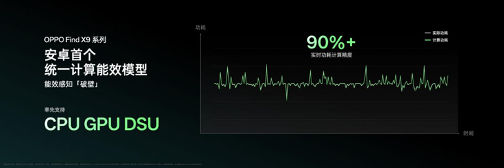 為了解決這些問題,此前 OPPO 帶來了安卓首個(gè)精準(zhǔn)算力單元集功耗模型,實(shí)現(xiàn)對 CPU、GPU 等 SoC 子系統(tǒng)功耗信息的體系化。全新一代 OPPO 潮汐引擎進(jìn)一步將其升級為安卓首個(gè)自主研發(fā)的 “統(tǒng)一計(jì)算能效模型”,首次實(shí)現(xiàn)了對 CPU、GPU、DSU 計(jì)算子系統(tǒng)的建模,更全面地覆蓋處理器核心計(jì)算單元的功耗表現(xiàn),在各用戶場景中實(shí)現(xiàn)了 90% 以上的功耗計(jì)算精度。通過對計(jì)算子系統(tǒng)功耗更完整和精準(zhǔn)的建模,減少無效的數(shù)據(jù)訪問與供給,使天璣 9500 的強(qiáng)勁算力實(shí)現(xiàn)前所未有的高效利用,讓芯片能效的認(rèn)知從推算走向計(jì)算。