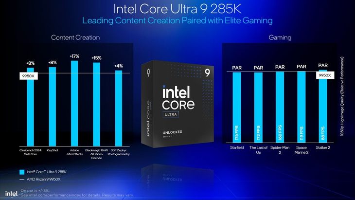 英特爾和AMD最近在對抗路上是越走越遠(yuǎn)了。英特爾目前向其渠道合作伙伴和終端用戶發(fā)布了一份新的演示文稿,更新了其酷睿Ultra 200系列"Arrow Lake-S"桌面處理器與AMD銳龍9000系列"Zen 5"處理器(包括帶3D V-Cache的銳龍9000X3D系列芯片)的性能對比情況。英特爾聲稱,在價格相近的情況下,其產(chǎn)品在游戲和生產(chǎn)力性能之間取得了更佳的平衡。這些性能聲明考慮到了該平臺自2024年10月發(fā)布近一年來所獲得的各種軟件和微碼更新,特別是英特爾在此期間對其APO軟件進(jìn)行的改進(jìn)。