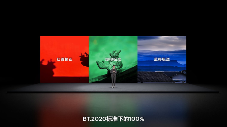 長期以來,多數(shù)高端電視宣稱的“高色域”其實是“局部高色域”。就像主流的RGB-Mini LED電視,在單色演示畫面中,色域覆蓋率能達(dá)到97%左右的BT.2020標(biāo)準(zhǔn),但一遇到多色復(fù)雜場景,色彩串?dāng)_、色域衰減等問題就會暴露無遺,導(dǎo)致我們在觀影時常常看到“紅色泛橙、綠色發(fā)灰”的色彩失真畫面。