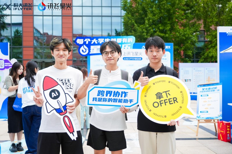 9月19日開始,訊飛星火(https://xinghuo.xfyun.cn/desk)陸續(xù)空降華東政法大學、中國地質大學、廣州大學、中國科學技術大學、成都外國語大學五所高校,開啟“訊飛星火闖關樂園”全國巡回活動。眾多學子組團打卡,沉浸式體驗AI帶來的新鮮玩法,徹底“點燃”秋招季。