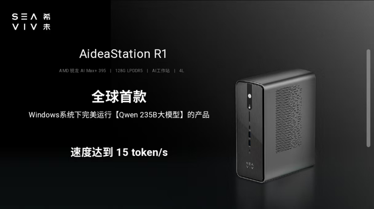 在桌面端,已經(jīng)推出的SEAVIV希未AideaStation R1 迷你AI算力中心實(shí)現(xiàn)了在 Windows 系統(tǒng)下流暢運(yùn)行 Qwen 235B 大模型,推理速度達(dá) 15 token/s,有效解決了 Windows 環(huán)境下大模型部署的適配問題。其升級(jí)版 R2 體積進(jìn)一步縮小至 2L,在保持高性能的同時(shí)優(yōu)化了散熱與結(jié)構(gòu)設(shè)計(jì)。