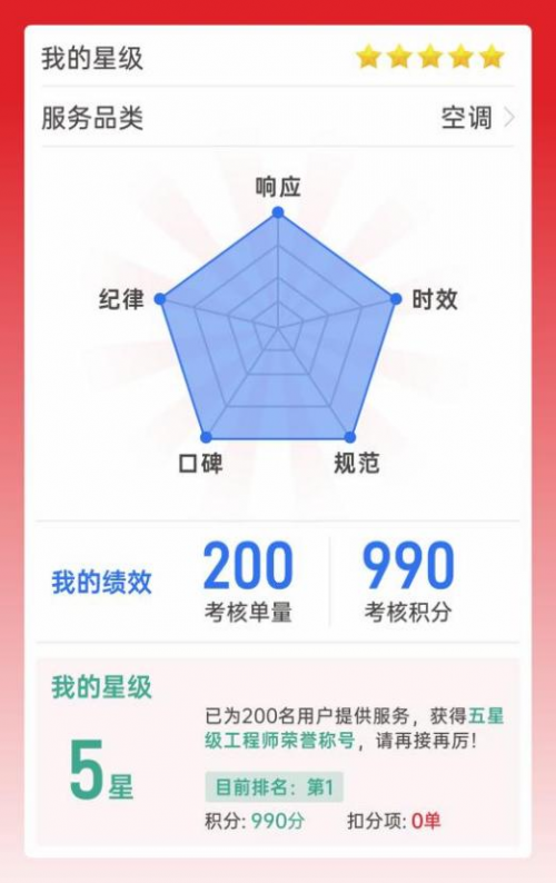 TCL空調(diào)在國內(nèi)已打造了兩大呼叫中心、5000+家服務商、30個戰(zhàn)區(qū)服務中心和4個大區(qū)后臺,共同構成了TCL空調(diào)龐大的服務網(wǎng)絡體系?;谶@一網(wǎng)絡,TCL空調(diào)推出了行業(yè)首個服務能力量化評估模型——“五星級工程師認證體系”,也就是TCL空調(diào)星服務標準體系,通過五維動態(tài)評估機制,全面覆蓋服務響應、時效、規(guī)范、用戶口碑和工作紀律。