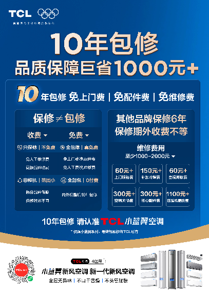 值得關注的是,TCL空調(diào)推出“十年包修”政策,凡是購買TCL家用空調(diào)小藍翼系列、家中空調(diào)小藍翼風管機、恒勁風二代風管機及小多聯(lián)、真省電pro等產(chǎn)品的用戶,均可享受整機10年免費包修服務,全免費包括上門費、零件費、檢修費和人工費,且使用原廠配件和工藝,由廠家直接負責。這一服務周期幾乎覆蓋了產(chǎn)品的全生命周期,真正實現(xiàn)“一次購買,十年安心”。