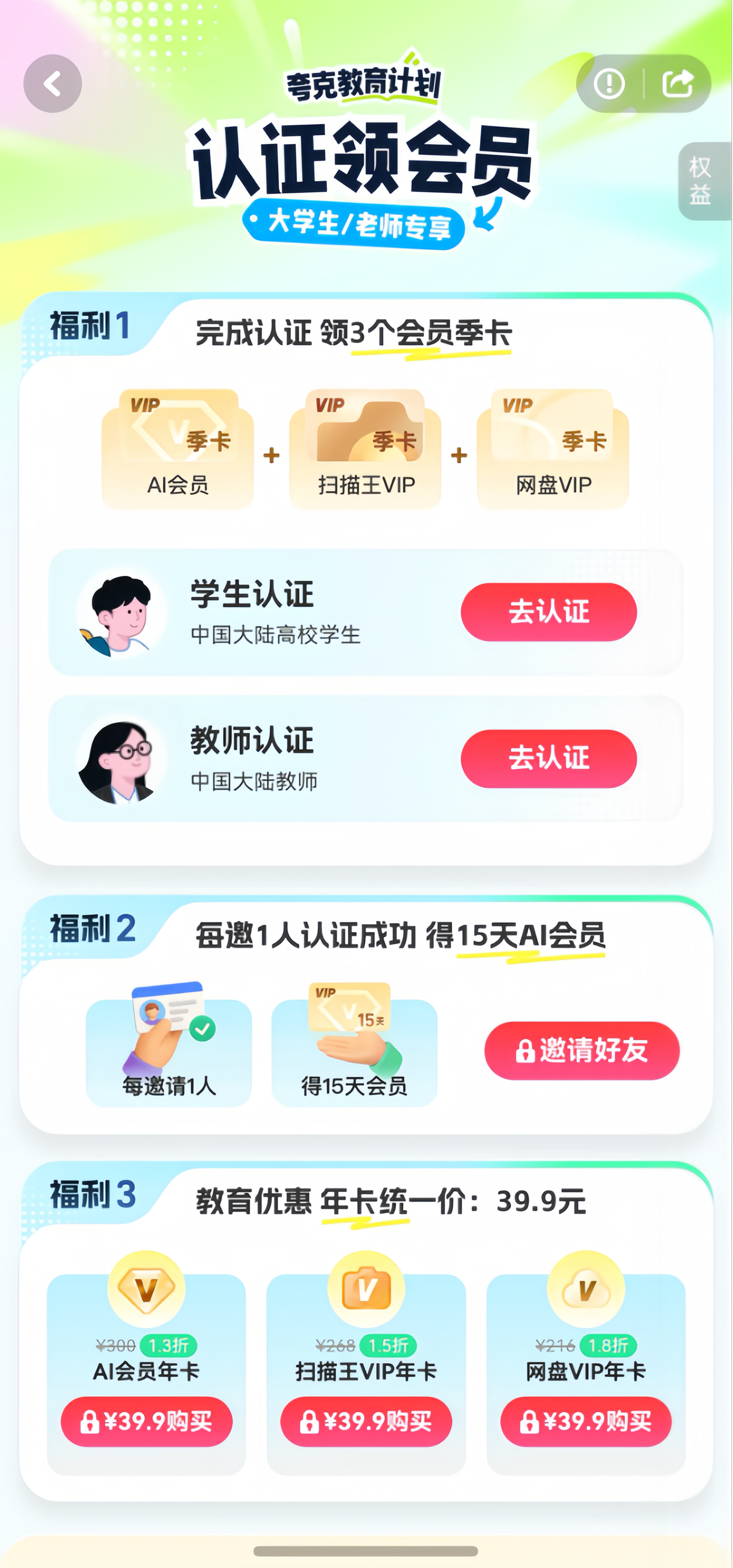 值得注意的是,為了幫助老師、同學(xué)們更加輕松、高效地迎接新學(xué)期,夸克持續(xù)開展“夸克教育計劃”,為全國大學(xué)生、老師發(fā)放實用的3個月夸克會員。鴻蒙版夸克用戶也可前往“我的”界面點(diǎn)擊活動banner,完成認(rèn)證并領(lǐng)取夸克三大會員季卡哦!