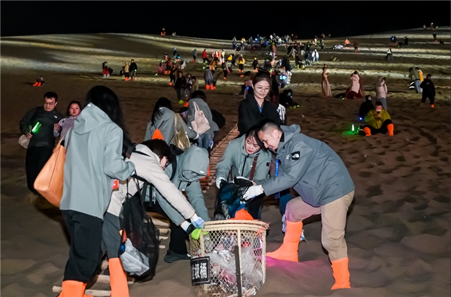 此外,在音樂季散場結(jié)束后,九牧還發(fā)起“帶走垃圾 留下愛心”的公益活動(dòng),組織志愿者沿途撿拾垃圾、清掃現(xiàn)場,并通過公益標(biāo)語和直播的形式,呼吁大家積極參與活動(dòng),讓每個(gè)人化身沙漠綠洲守護(hù)者。