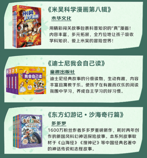 若你想給孩子選讀物,為日常添趣味,這三本書堪稱優(yōu)質(zhì)之選。由未華文化打造的《米吳科學(xué)漫畫第八輯》,以精彩的闖關(guān)故事為載體,將科普知識(shí)巧妙融入其中,打造出“真”漫畫質(zhì)感,讓科普學(xué)習(xí)不再枯燥。由童趣出版社推出《迪士尼我自己會(huì)讀》,書中內(nèi)容生動(dòng)有趣、豐富多樣,為孩子的閱讀啟蒙與成長(zhǎng)助力?!稏|方幻游記?沙海奇行篇》的作者多多羅以《山海經(jīng)》《搜神記》等中國(guó)經(jīng)典名著中的神話傳說(shuō)、志怪故事為創(chuàng)作根基,結(jié)合巧思與創(chuàng)新,為孩子帶來(lái)全新的有趣故事!