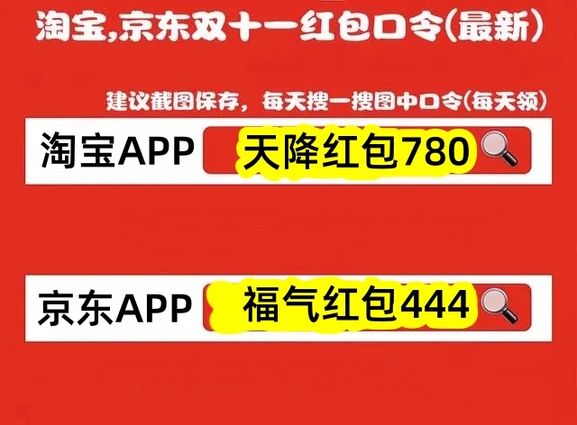 紅包領取不要錯過:京東每天搜索「福氣紅包444」可領取3次;淘寶每天搜索「天降紅包780」即可領取。