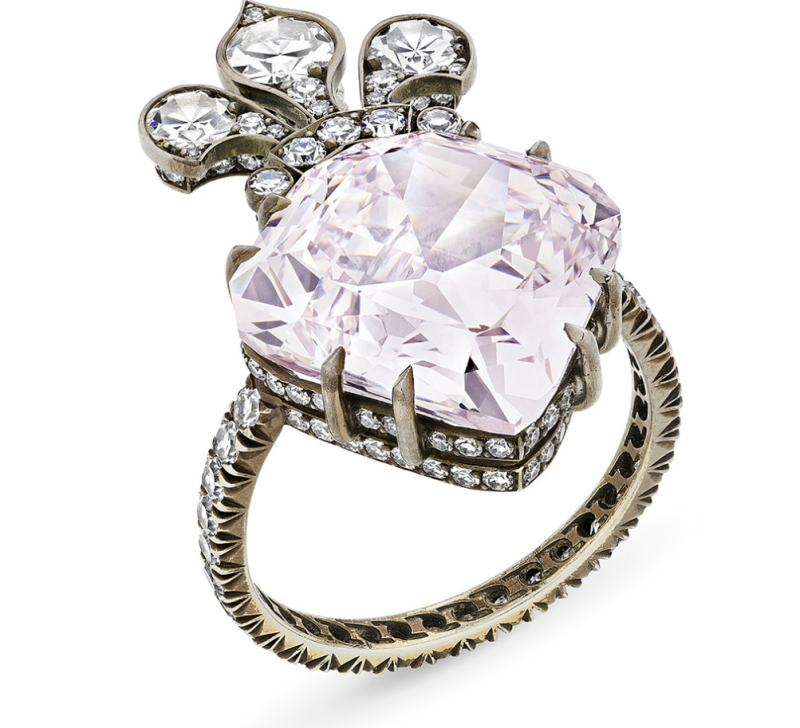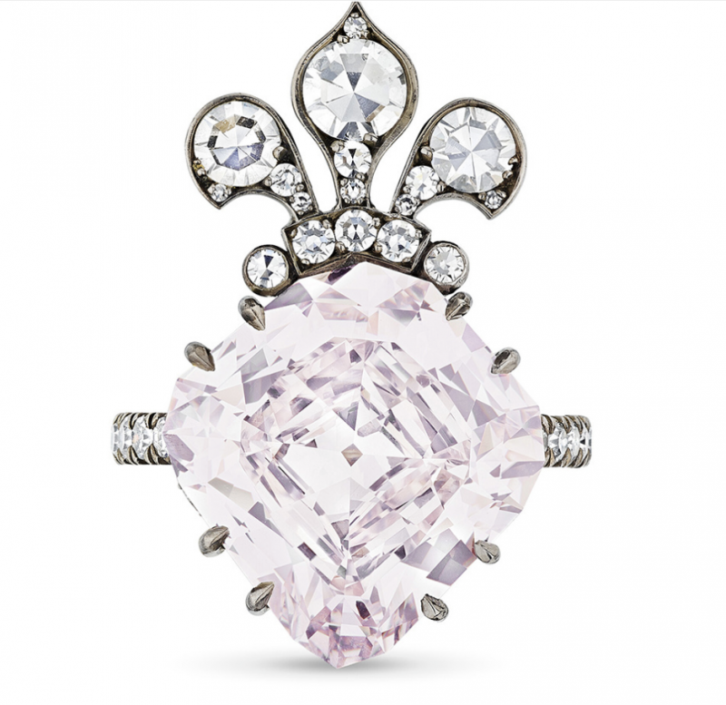 在拍賣場(chǎng)上,古董鉆石珠寶的輝煌戰(zhàn)績不勝枚舉。2025年Christie’s紐約珠寶春拍中,一枚曾屬于法國王室的風(fēng)箏形切割紫粉鉆Marie - Thérèse,SI1凈度,重達(dá)10.38ct,成交價(jià)高達(dá)1398萬美元,一舉打破同色級(jí)紫粉鉆的拍賣紀(jì)錄。這枚鉆戒由美國珠寶商JAR改制為戒指作品,其背后不僅有著鉆石本身的卓越品質(zhì),更承載著一段跨越幾個(gè)世紀(jì)的歷史。它曾屬于法國王后Marie Antoinette唯一幸存的長女Marie - Thérèse,此后百年間在歐洲王室家族之間傳承,見證了歐洲歷史的跌宕起伏。Marie Antoinette王后的斷頭悲劇和茨威格傳記共同疊加的敘事溢價(jià),為這件古董鉆戒增添了一絲神秘色彩。